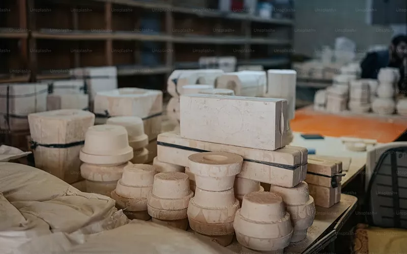 In the ceramics industry, gypsum is widely used for mold preparation, especially in the production of sanitaryware like basins, toilets, and tiles. It enables the casting of fine, accurate, and reusable molds due to its smooth texture, fast setting, and ability to absorb water from slip mixtures. This ensures consistent shape and strength in ceramic products.